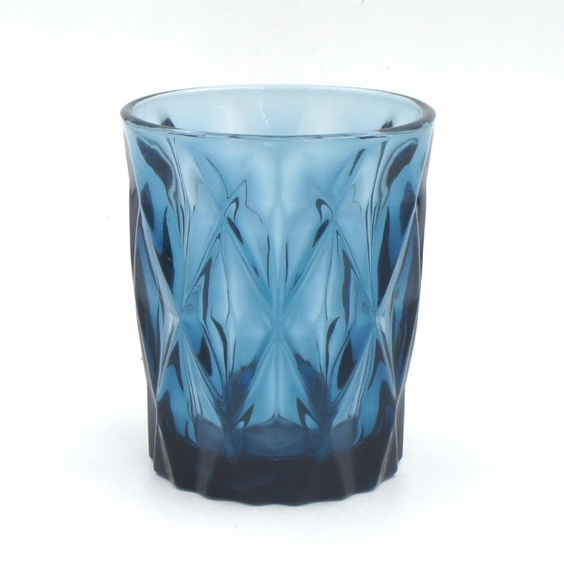 Handmade solid color glass tumbler with retro diamond design decoration