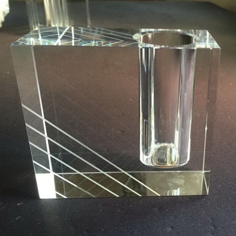 Handmade square shape K9 crystal vase with sandblasted lines decoration