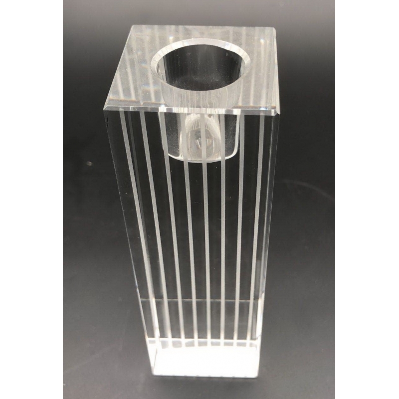 Handmade K9 crystal tealight holder with sandblasted lines decoration